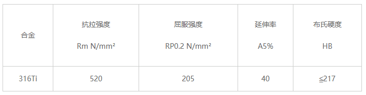 The min data of mechanical data of 316Ti rod at room temperature: